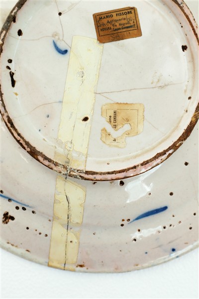 Manifattura di Savona, secolo XVIII. Lotto composto da due piatti in maiolica c