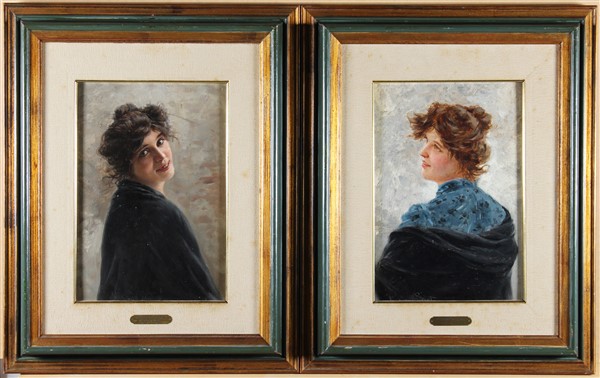 Lotto composto da due "Ritratti femminili"olio su cartone (cm 32x22)