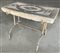 Gruppo di undici diversi elementi architettonici in pietra scolpita dei quali alcuni con inserti in marmo a motivi sagomati, uno montato su tavolino in ferro. Secolo XIX (L. max cm 62) (difetti e mancanze)