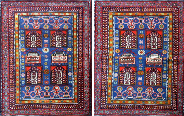Coppia di tappeti caucasici Azerbaigian, a disegni geometrici, anni '970