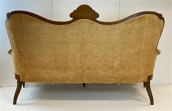 Divano Luigi Filippo in noce con schienale sagomato decorato da intagli a valva