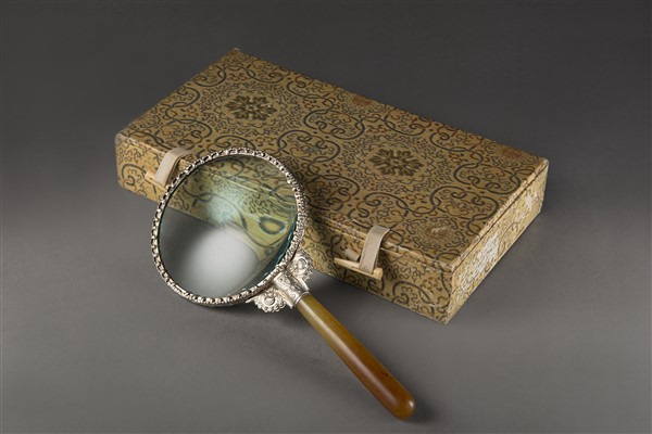 Lente di ingrandimento in metallo e manico in pietra dura con scatola Cina, Se