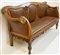 Divano a orecchioni in noce con schienale e grembiale intagliati e traforati a volute intrecciate, gambe tornite. Secolo XIX (L. cm 198) (difetti)