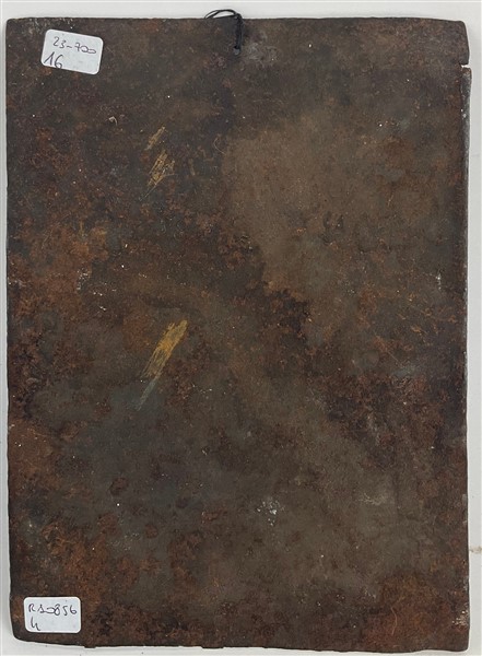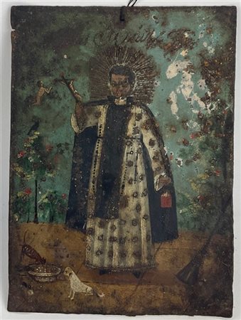 Ignoto di inizio secolo XIX. Santo, olio su metallo (difetti)
