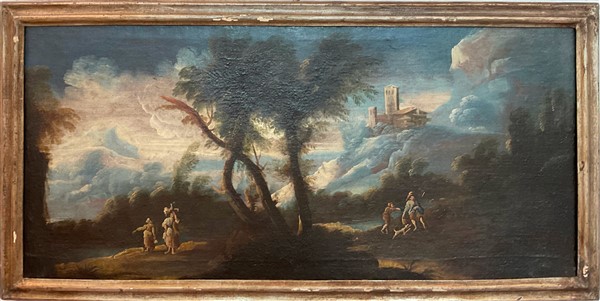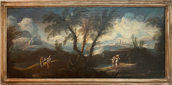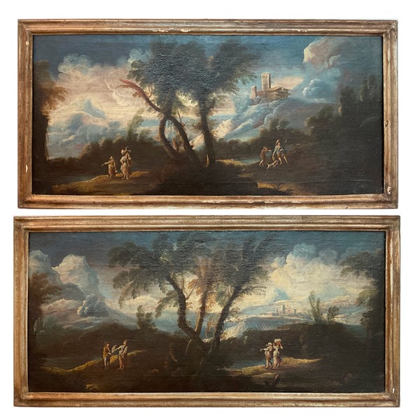 Scuola dell'Italia settentrionale del secolo XVIII Coppia di paesaggi con figu