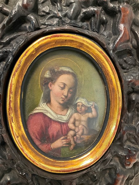 Scuola dell'inizio del secolo XVIII "Madonna con Bambino" Olio su rame, cm 12x