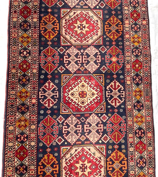 Tappeto passatoia, Caucaso, recente manifattura. Decoro con medaglioni stilizza