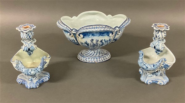 Lot 923 | Manifattura Cantagalli, lotto composto da un'alzata e coppia di candelieri in m