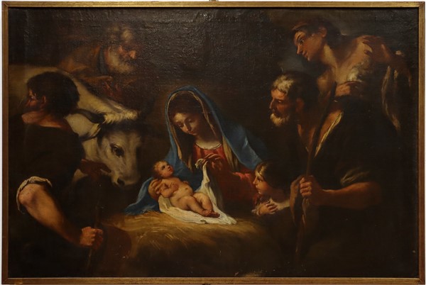 Scuola veneta del secolo XVIII "Adorazione dei pastori" Olio su tela, cm 66,5x