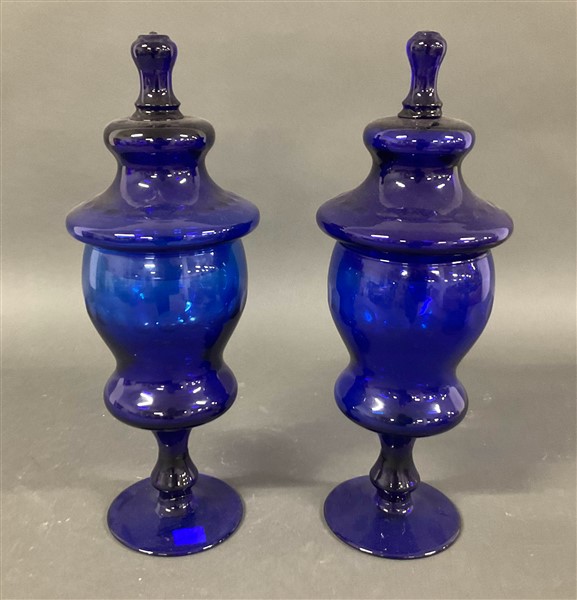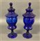 Coppia di potiches con coperchio in vetro blu (h. cm 45) (difetti)