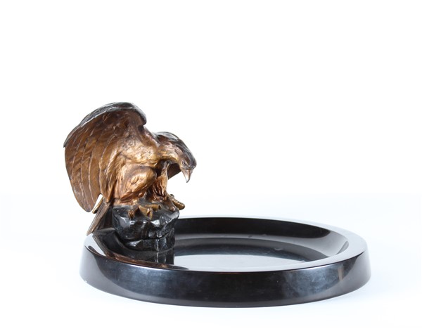 Manifattura austriaca, secolo XX. Grande svuotatasche in marmo nero con aquila in bronzo (h. cm 22; d. cm 34) (lievi difetti)