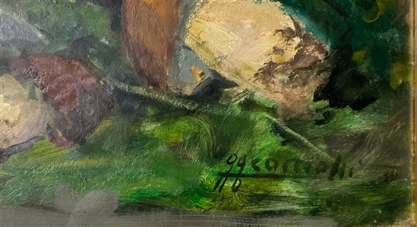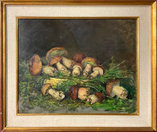 Luigi Comolli "Composizione con porcini" olio su masonite (cm 48x61) Firmato in