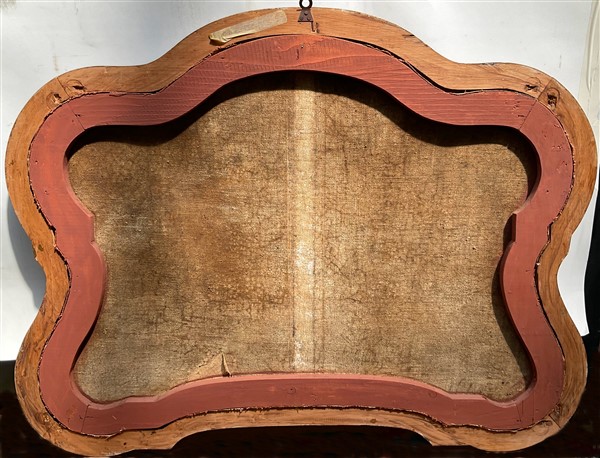 Coppia di antichi dipinti a olio su tela sagomata, cm 93x66