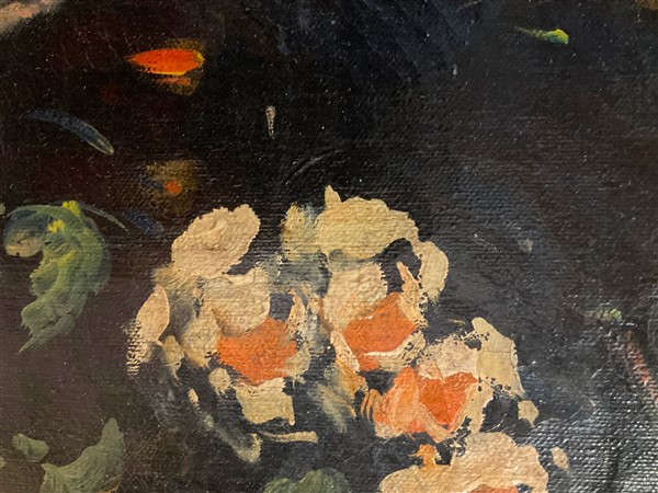 Ignoto di inizio secolo XX "Composizione con fiori e frutta" olio su tela (cm
