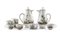 Ginori manufacture, Doccia, early 19th century. Lot consisting of two polychrome painted porcelain coffee pots, seven cups and a sugar bowl (missing lid) decorated with birds within landscape (h. max cm 20) (defects, two lids not pertinent, one cup without handle)