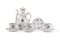 Ginori manufacture, Doccia, late 18th century. Lot consisting of a porcelain coffee pot with lid, three cups and four saucers (h. max cm 24) (defects, lid with restoration)
