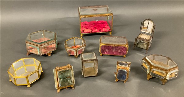 Lotto composto da dieci cofanetti in vetro molato e metallo dorato di diversa f