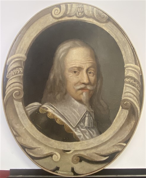Lot 1030 | Scuola del secolo XVII "Ritratto virile in cornice dipinta" Olio su tela oval