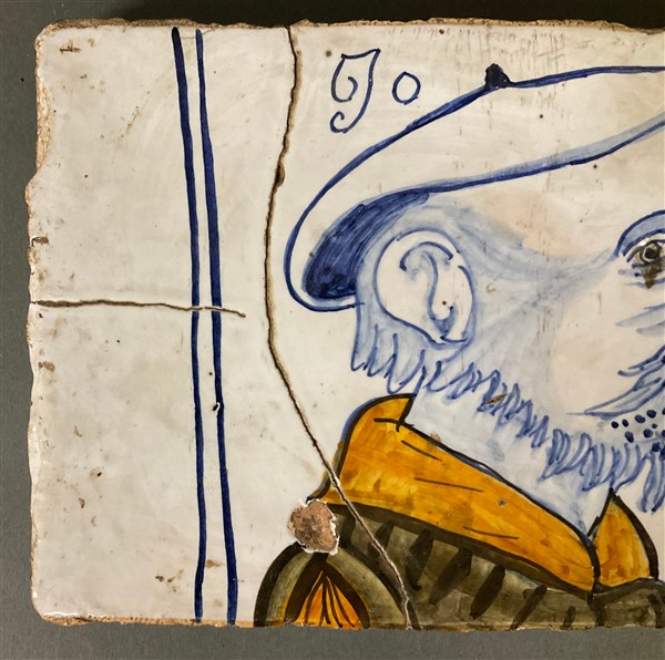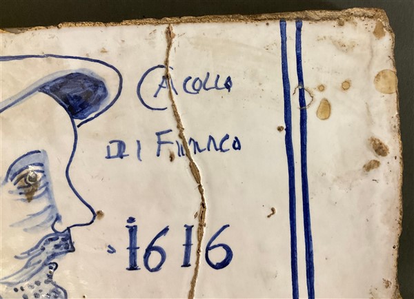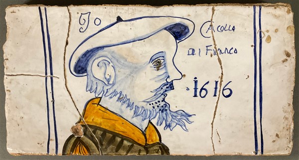 Lot 1036 | Formella in maiolica decorata in policromia con profilo maschile ed iscrizione