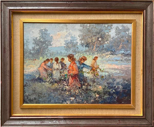Antonio Pecoraro Antonio Pecoraro"La raccolta dei fiori" olio su tela (cm 60x81