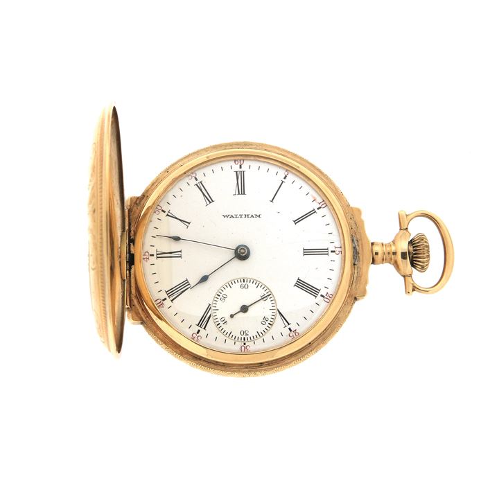 WALTHAM Orologio da tasca inizi XX secolo Diam 48 Tripla cassa in oro incisa...
