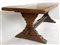 Tavolo da refettorio in rovere con sostegni sagomati a mensola riuniti da trave