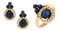 Demi -parure composta da coppia di orecchini ed anello in oro giallo con zaffiri taglio cabochon e diamanti taglio brillante per complessivi ct 0,30 ca