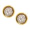 Coppia di orecchini in oro giallo e bianco, di forma tonda con pavè di diamanti taglio 8/8 per complessivi ct 1, 20 ca