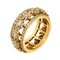 Anello in oro giallo composto da due file di diamanti taglio brillante trattenenti fascia centrale a forma di fiori stilizzati in diamanti taglio brillante; complessivi ct 1,30 ca