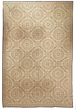 Tappeto piccolo punto in lana, Europa, secolo XX. Decoro con suddivisione a los