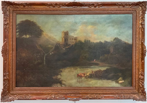 Scuola della fine del secolo XVIII-inizio XIX "Pastore e armenti in un paesaggi