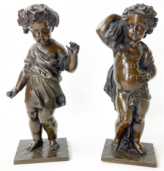 Arte del secolo XIX. Lotto composto da due sculture in bronzo raffiguranti putti allegorici delle stagioni (h. cm 20) (difetti e mancanze)