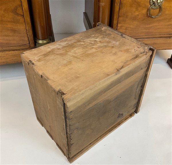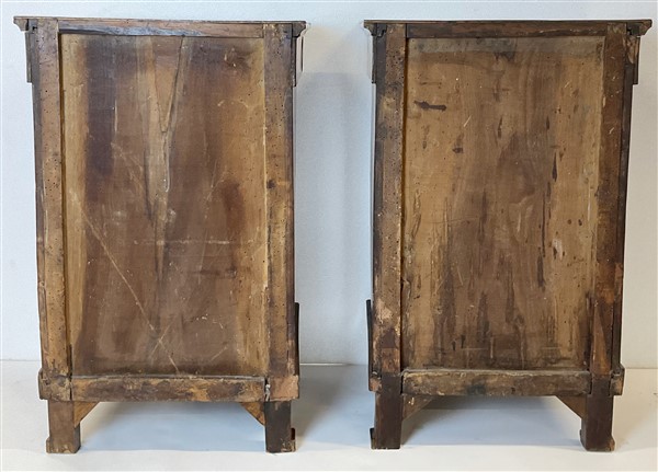Coppia di comodini Impero in noce a due cassetti grandi e uno piccolo sottopian