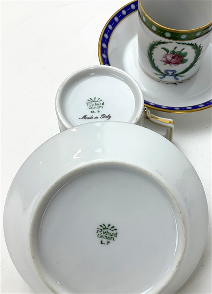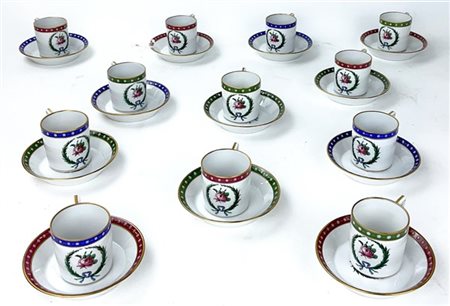 Manifattura di Richard-Ginori. Servizio da caffè in porcellana composto da dodici tazze con piattino, decoro in policromia a motivi floreali (lievi difetti)