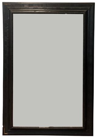 Specchiera guilloché in legno ebanizzato. Secolo XVIII, specchio di epoca successiva (cm 120x173) (difetti e mancanze)
