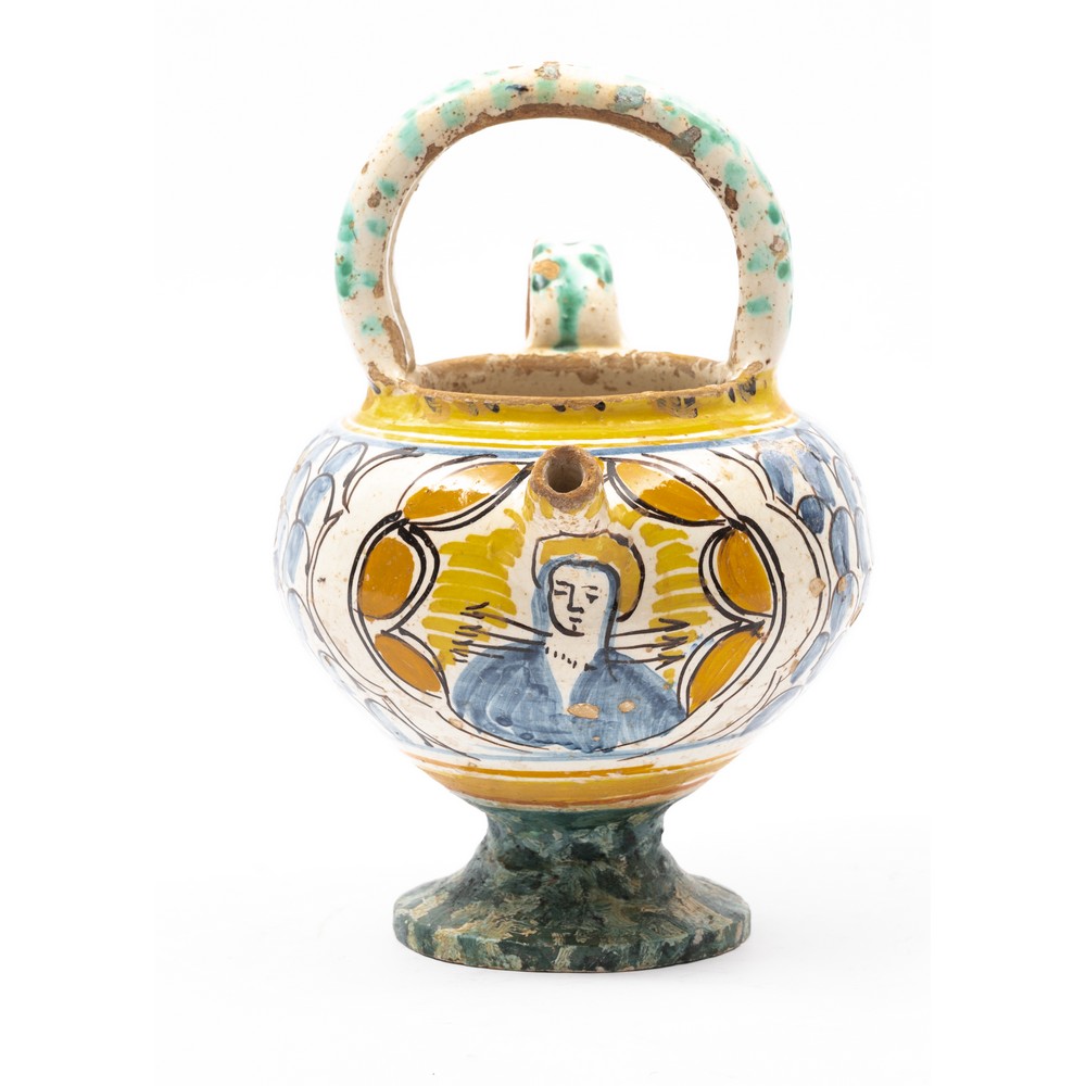 Versatoio in ceramica smaltata e decorata con medaglione raffigurante "Madonna addolorata" (restauri).