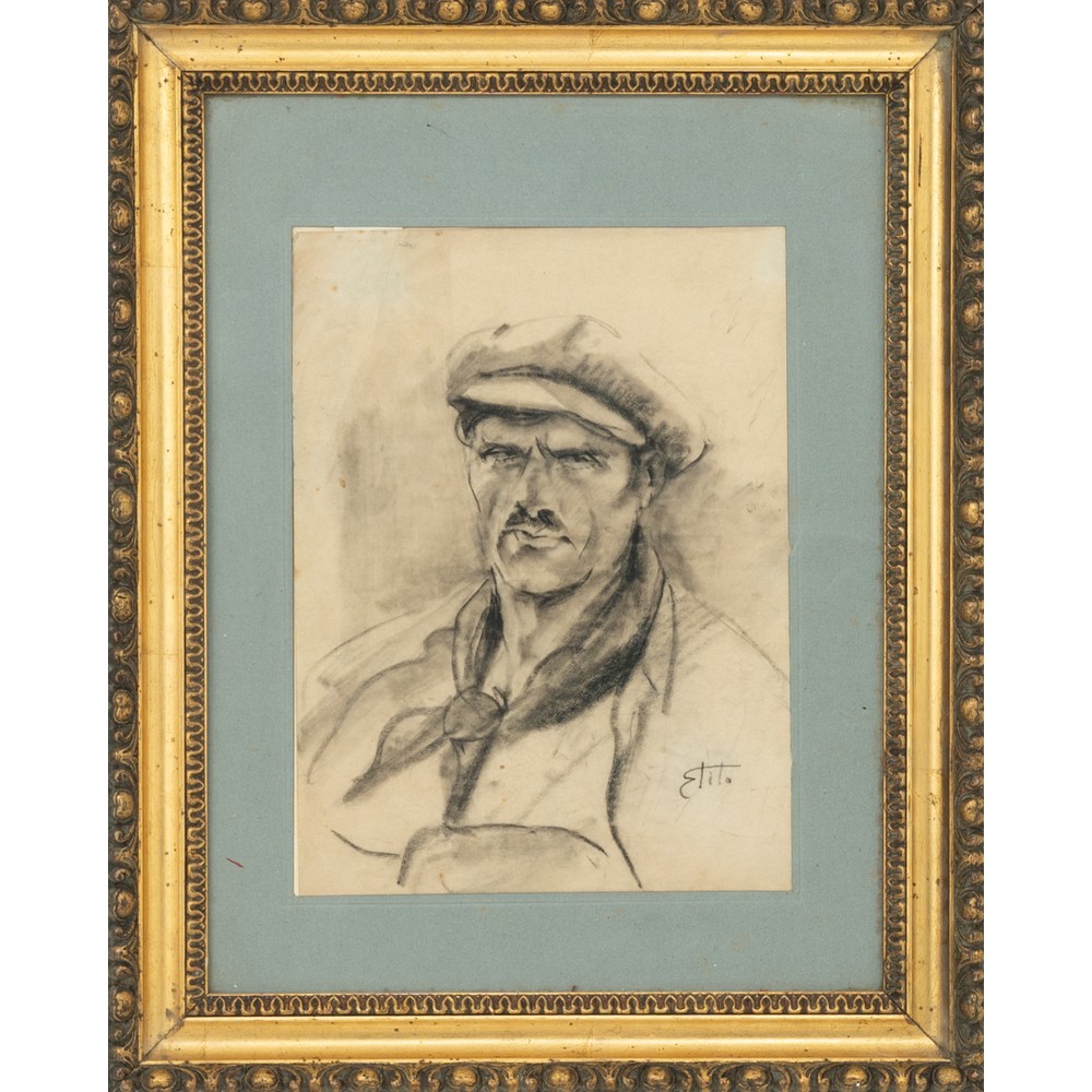 ETTORE TITO, Ritratto maschile, Carboncino su carta