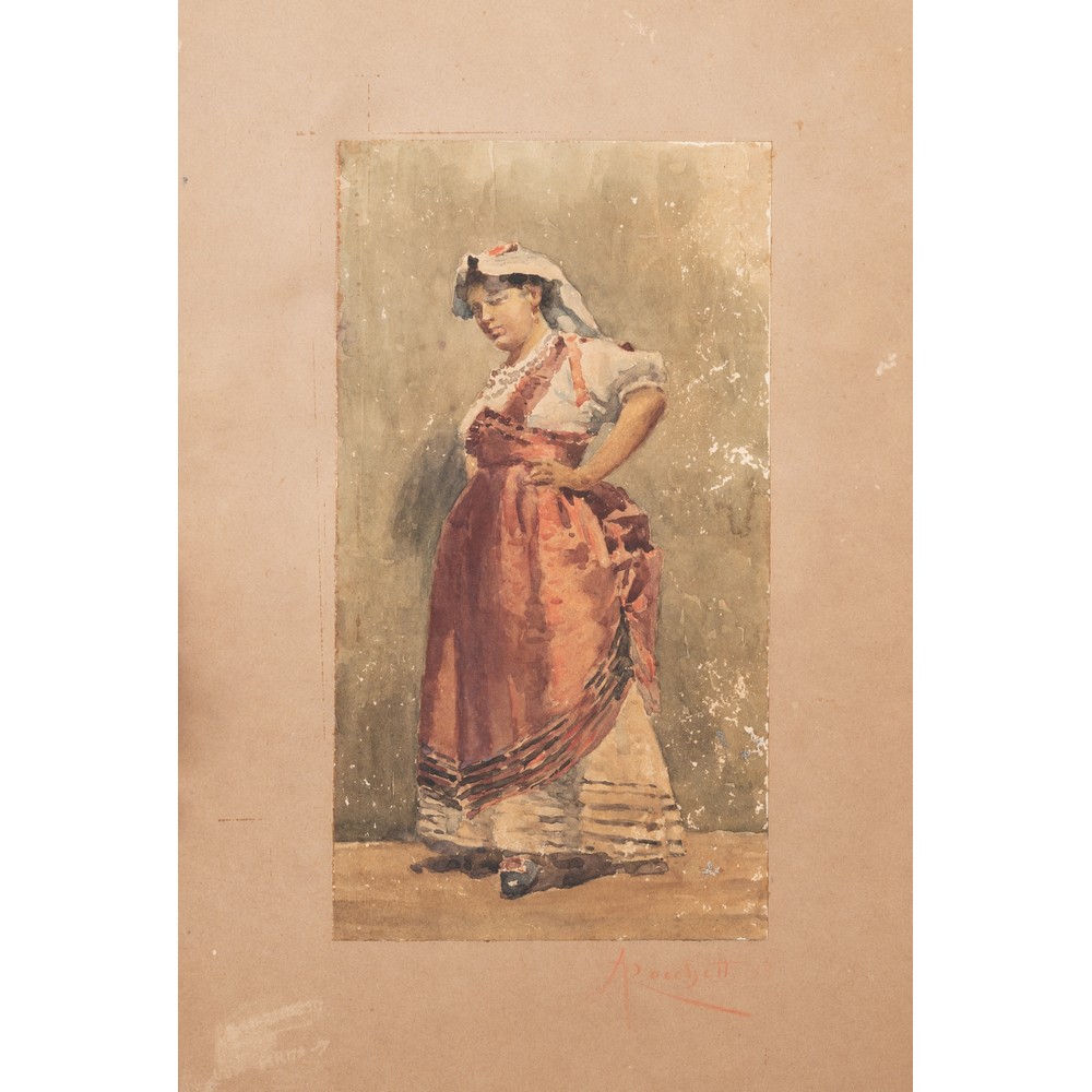 PITTORE DEL XIX SECOLO, Donna in costume, Acquarello su carta