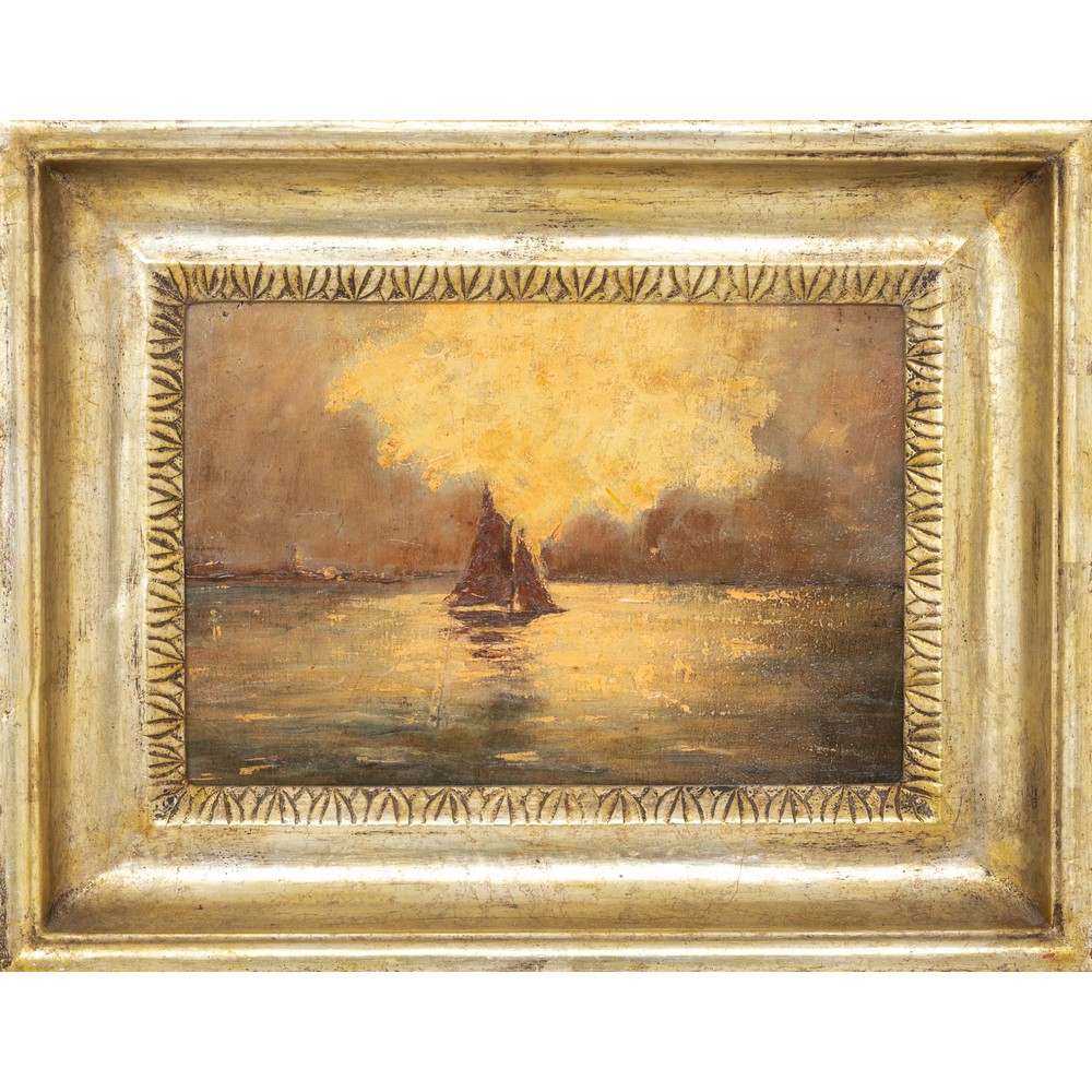 PITTORE PRIMI DEL '900, Paesaggio marino, Olio su tavoletta