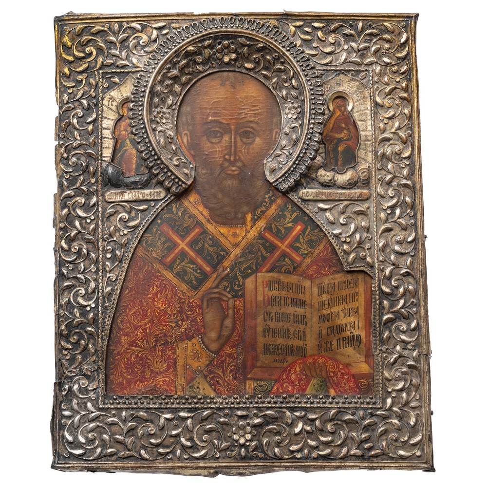 Icona in legno con riza in argento raffigurante "San Nicola".