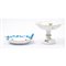 Alzata Queen Victoria in porcellana bianca e decorata, lumeggiature in oro e raviera in porcellana bianca con decori a motivo naturalistico nei toni del blu, lumeggiature in oro.