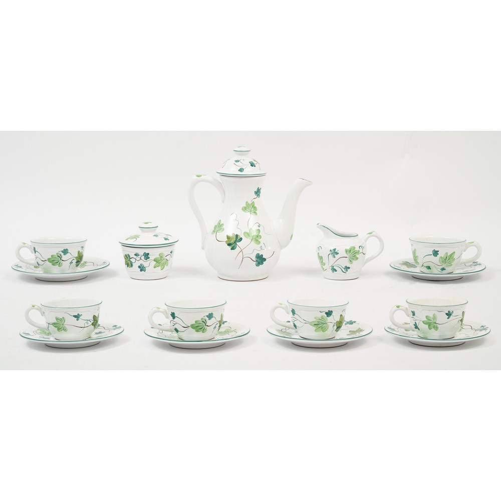 Servizio da tè in ceramica composto da: teiera, zuccheriera, lattiera e 6 tazze con piattino (lieve sbeccatura alla teiera).