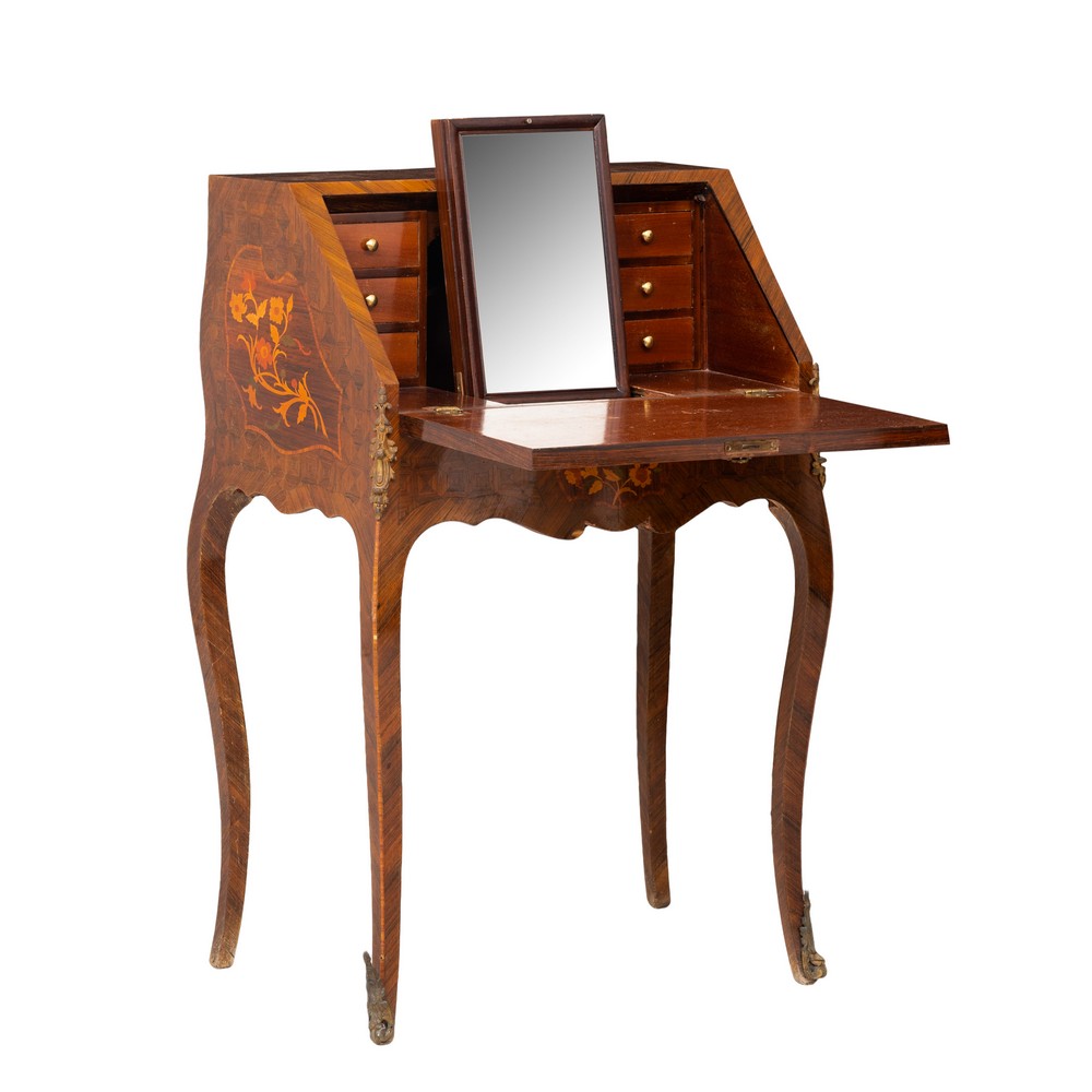 RIBALTINA stile Luigi XV in ebano e tarsie in bosso con fregi in bronzo.