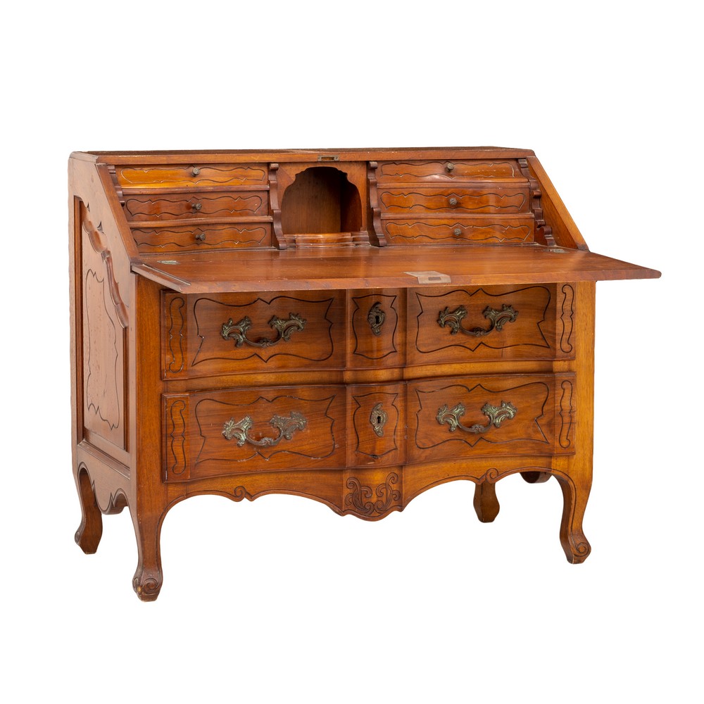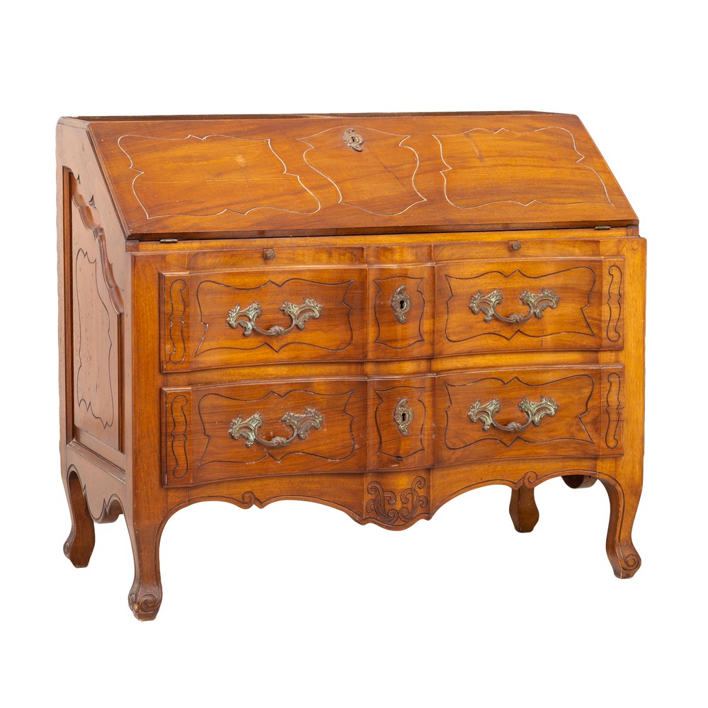 Mobile/Ribalta in legno di noce con due cassetti e ribalta.
