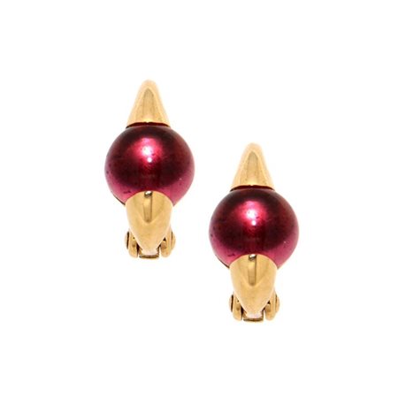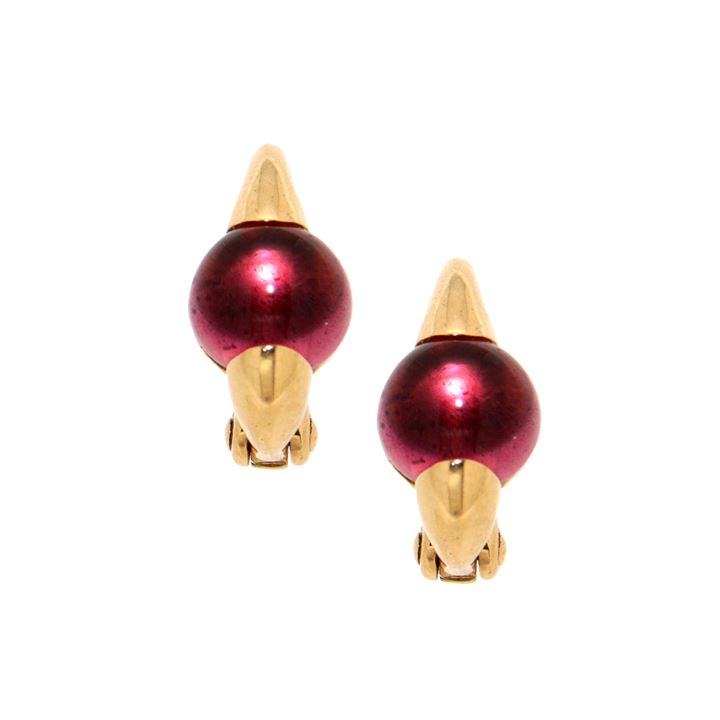 Orecchini in oro giallo, a monachella, firmati “Pomellato”, modello “M'ama non m'ama”, con due semisfere di rodolite
