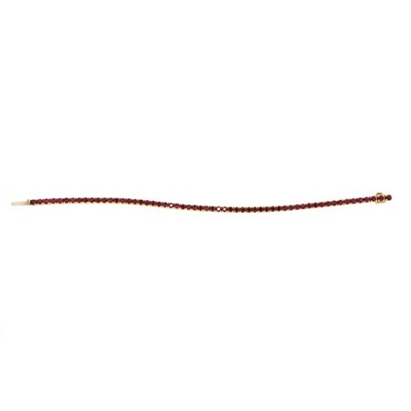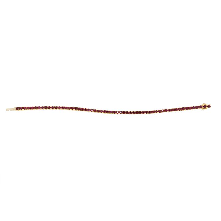 Bracciale in oro giallo, modello tennis, composto da cinquantotto rubini taglio rotondo