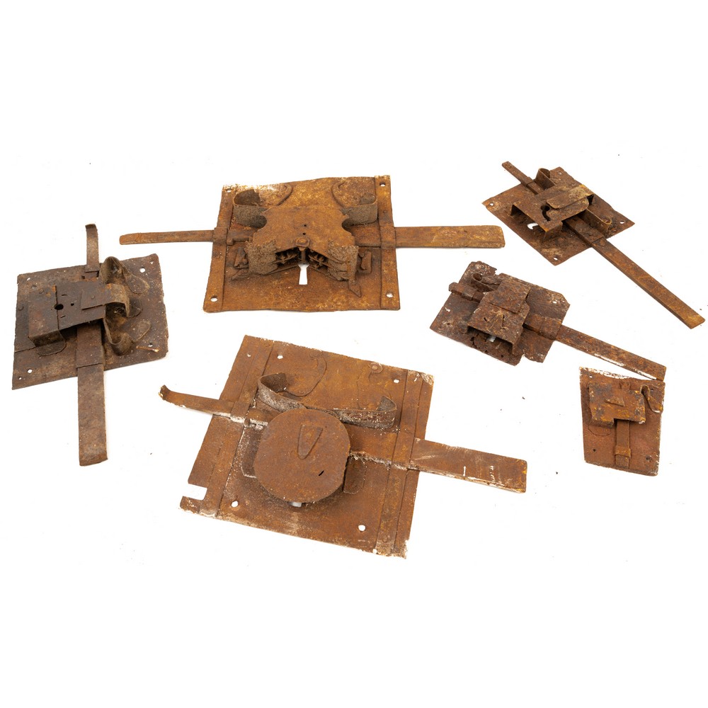 Sette serrature, quattro catenacci, sette chiavi da portone, cinque ferri di cavallo e chiodi battuti a mano