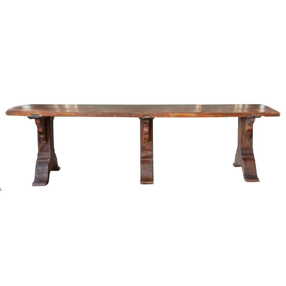 Tavolo fratino di gusto seicentesco in legno di pino.