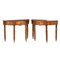 Tavolo a due mezzine in legno di noce con cassetti ai lati.