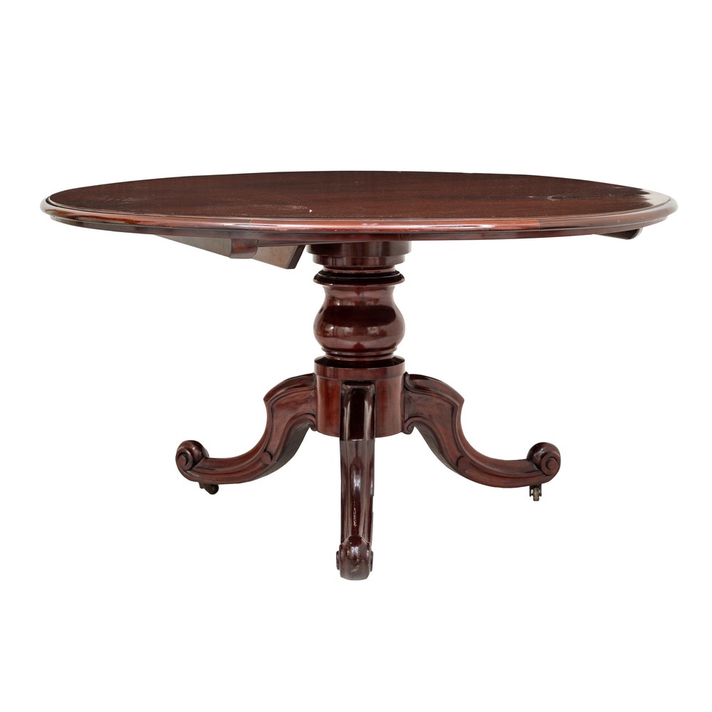 Tavolo tondo periodo Vittoriano a vela in legno di mogano.